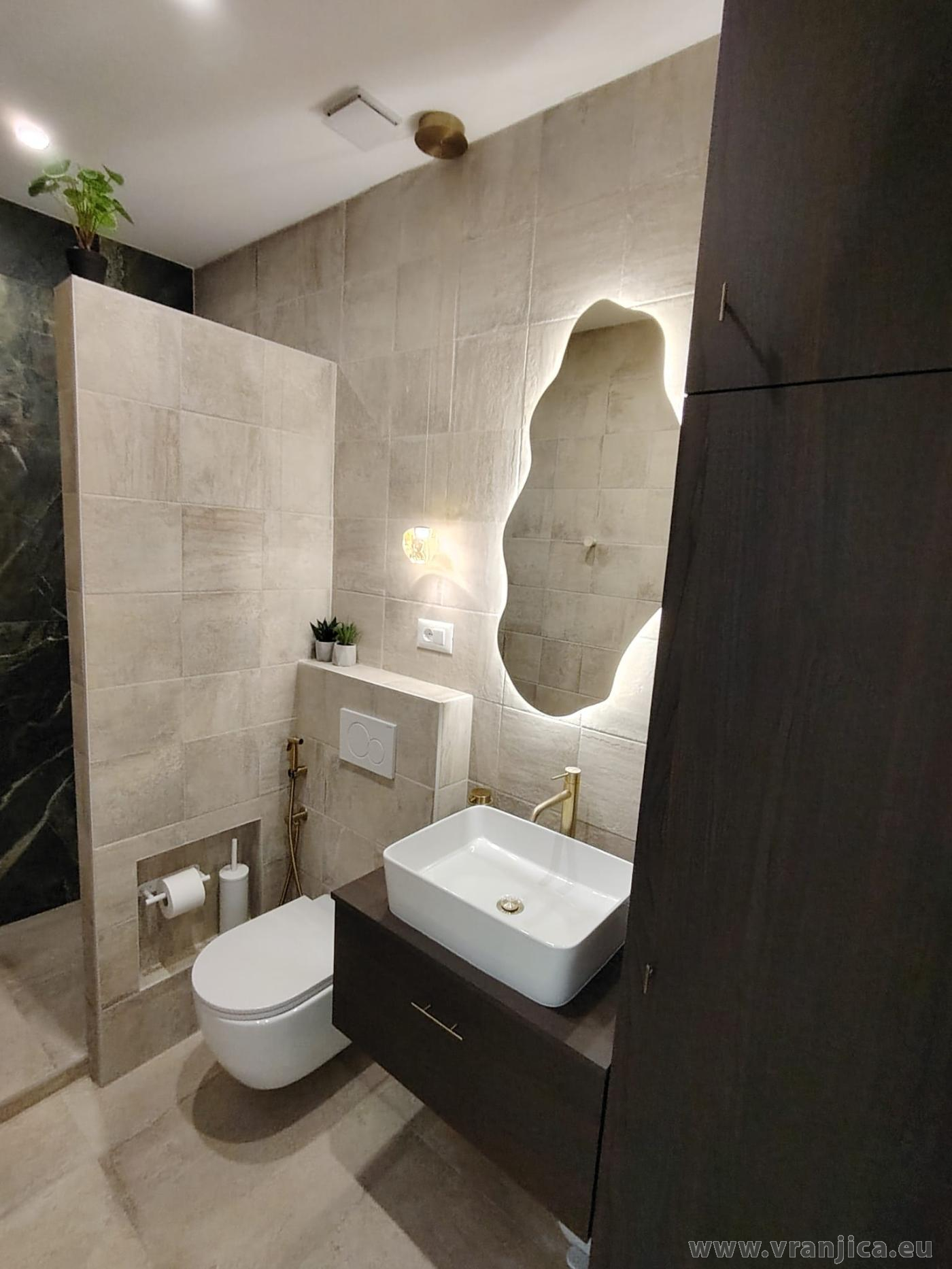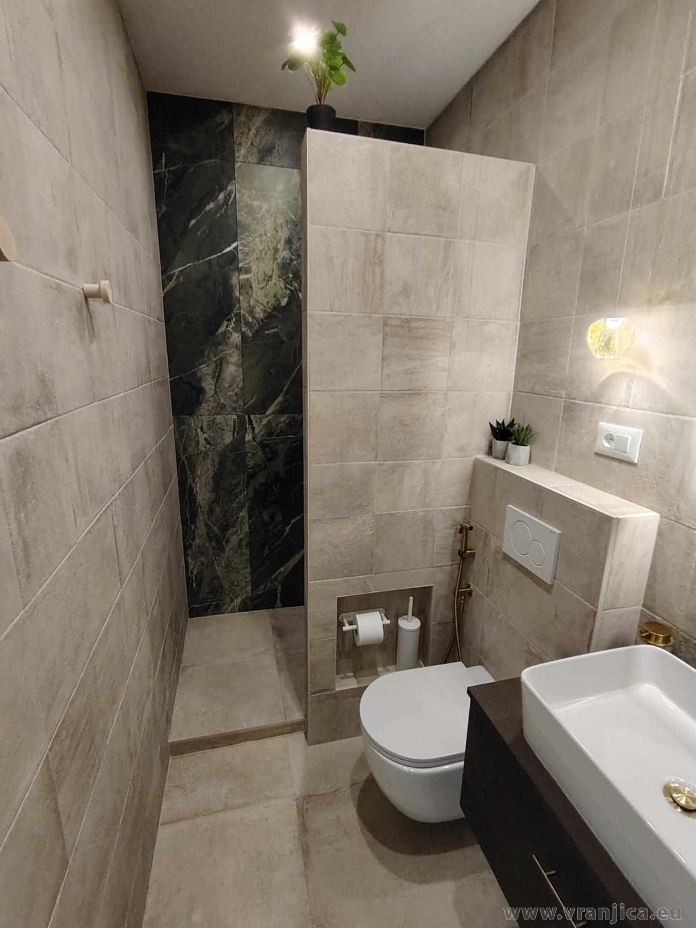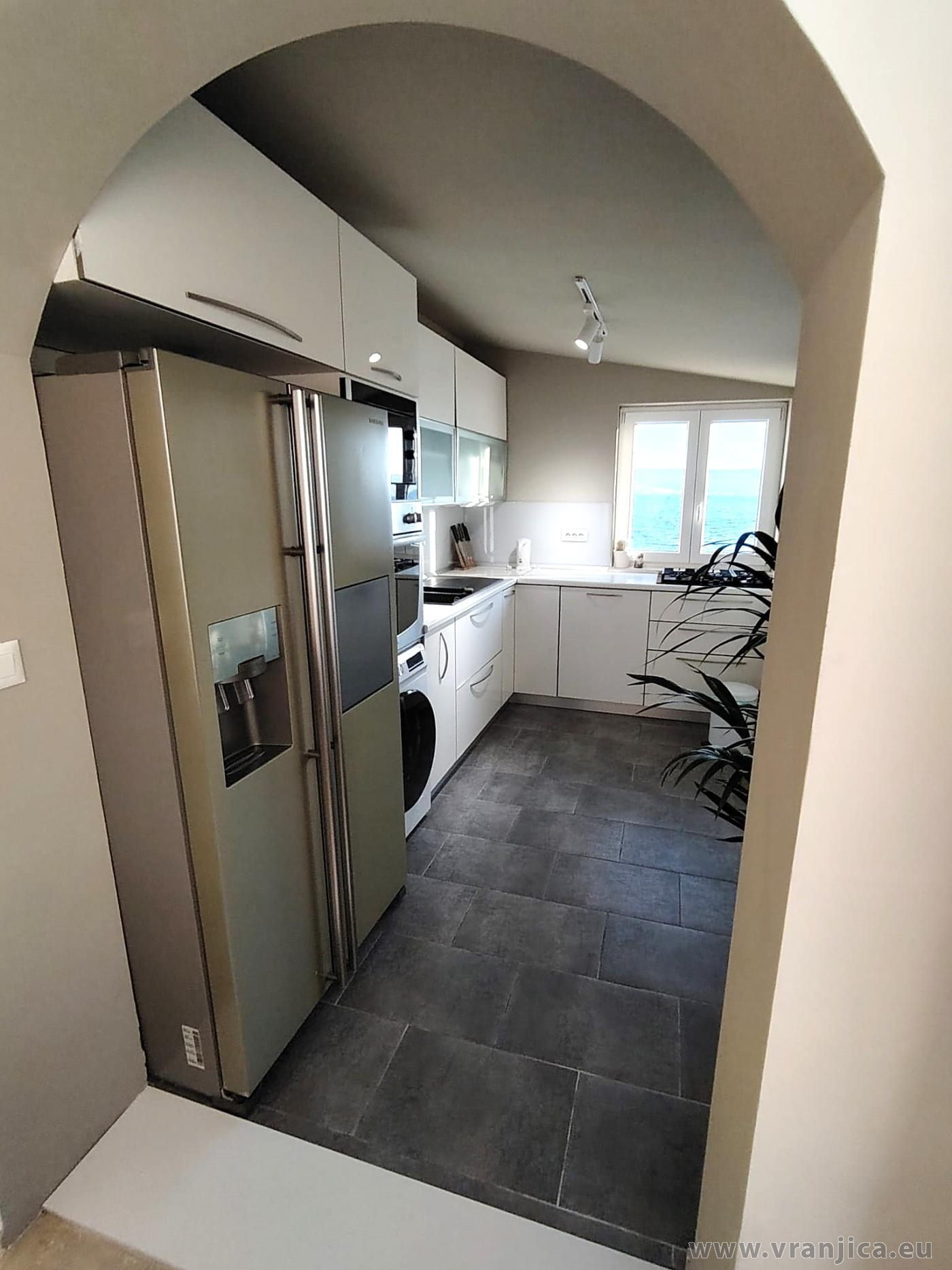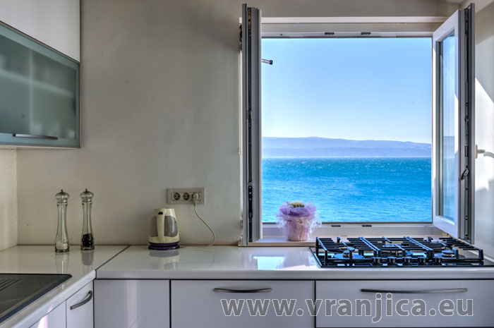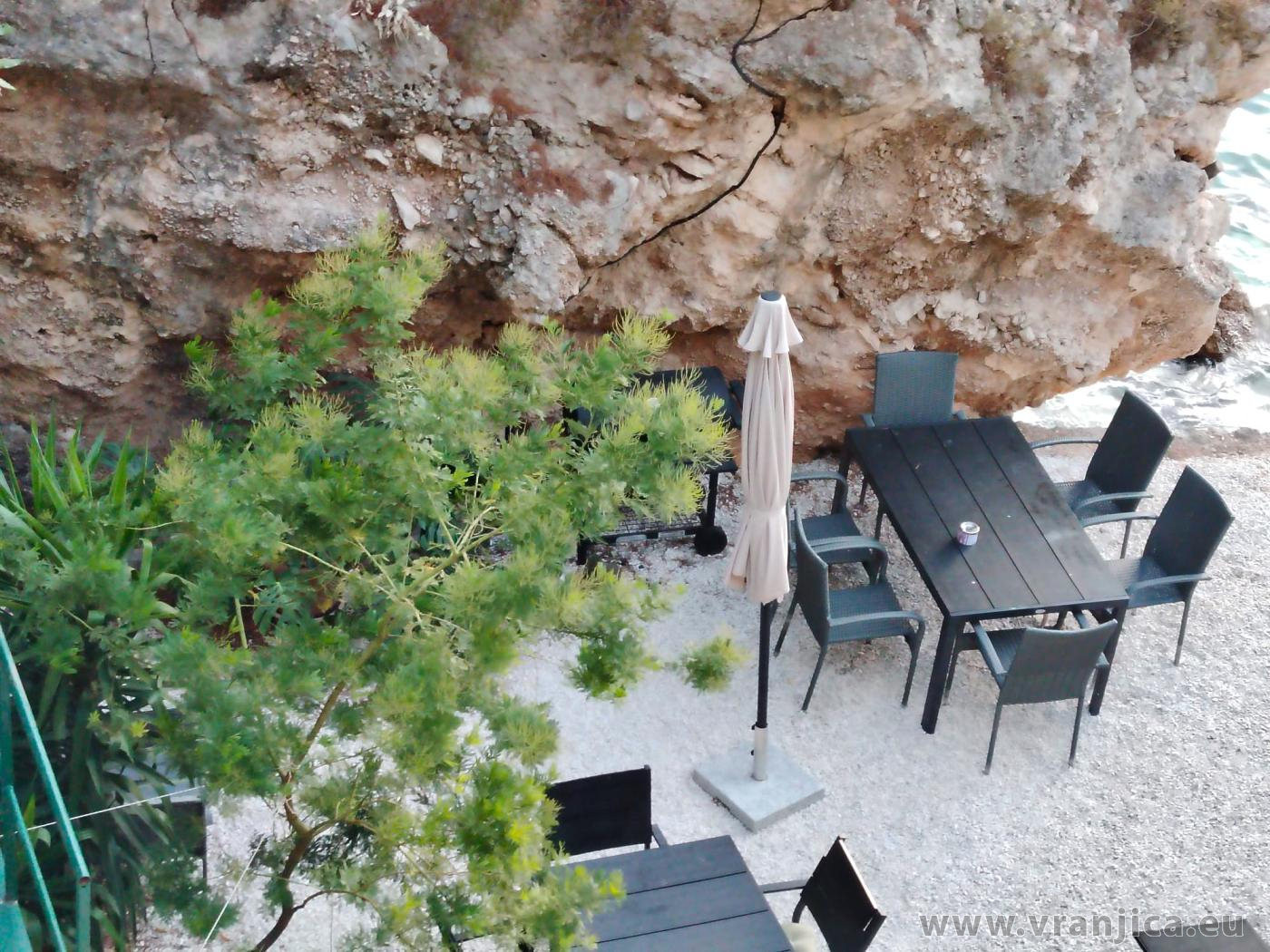AP1 (2+2) pro 4 osoby: 2. patro, levá boční strana vily, 1 ložnice (dvoulůžko 160x200 cm), obývací pokoj + kuchyně (1x rozkládací dvoulůžko 160x210 cm), koupelna (WC, sprcha), terasa s výhledem na moře, plocha 55 m2 + boční terasa 5 m2. Informace o objektu ZDE.